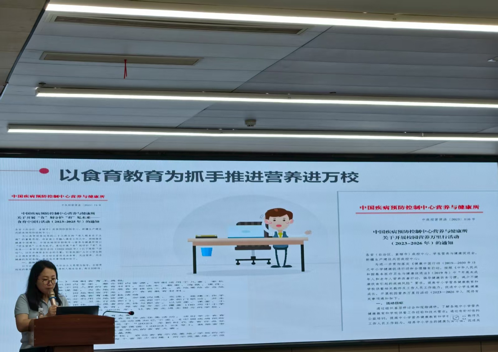 会上,市疾控中心熊鹰所长强调了学生营养健康工作的重要性,并邀请了中国疾控中心曹薇专家讲解了学生体格监测技术和数据平台使用;重庆市学生科学体育艺术发展中心健康促进部部长窦义蓉讲解了农村义务教育学生营养改善计划实施情况与食堂供餐管理要求;重庆医科大学殷佳伟副教授分享了儿童食育教育的发展及实践;重庆市疾病预防控制中心严佩佩依据《学生餐营养指南》详细讲解如何利用学生电子营养师进行科学配餐。