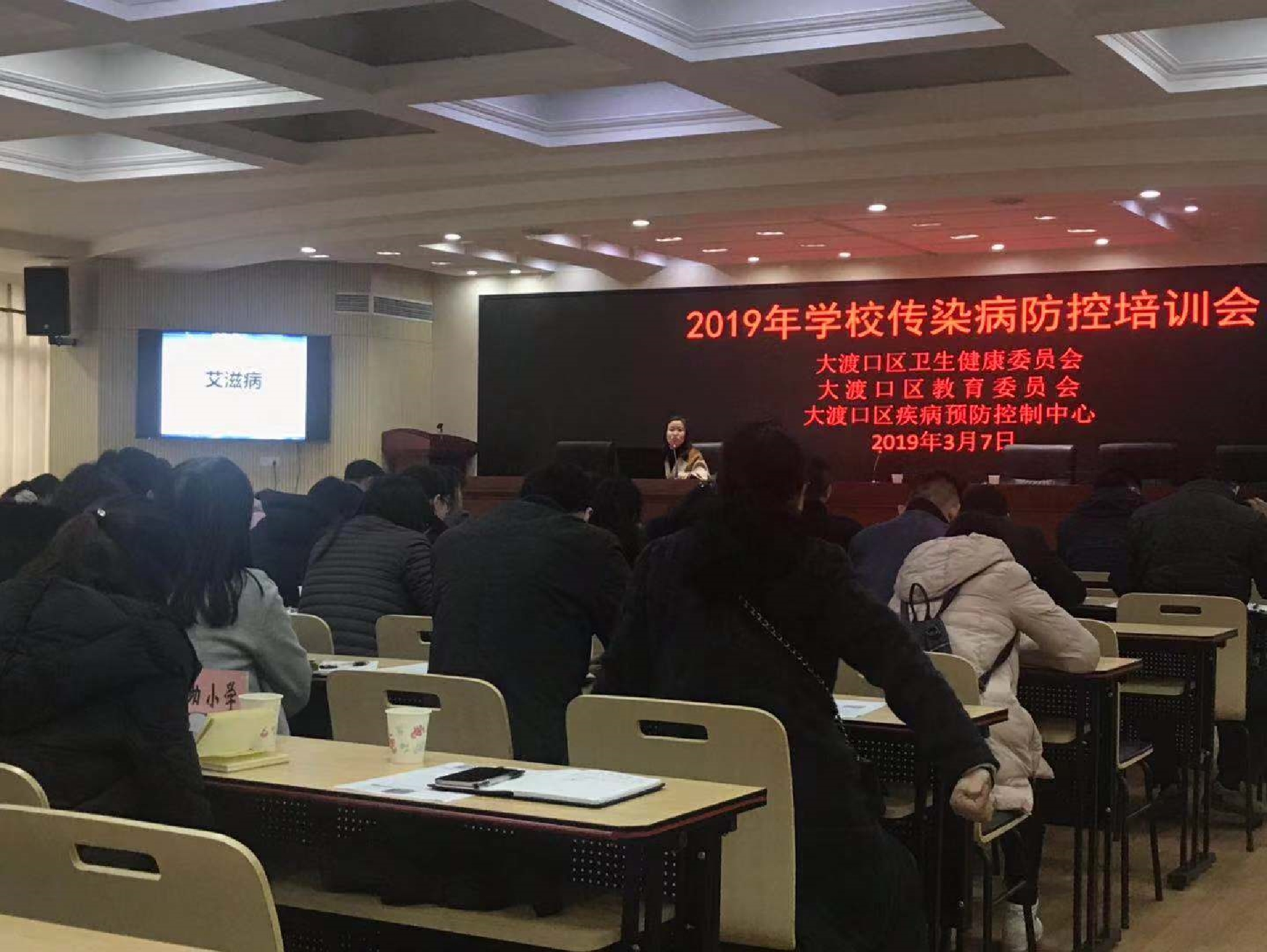 2019年3月7日下午,重庆市大渡口区疾控中心书记章廷超、流病科科长喻琳及工作人员来到大渡口区区委党校,对辖区50余所小学、初高中老师、医务人员进行传染病防治知识培训。会上流病科科长喻琳对学校常见传染病防控、尤其是学校青年学生艾滋病防治工作进行了详细介绍。通过本次培训会,使本区教职员工充分掌握了常见传染病辨识和防控的相关知识,为辖区内校园内外传染病防控工作打下了坚实的基础。
