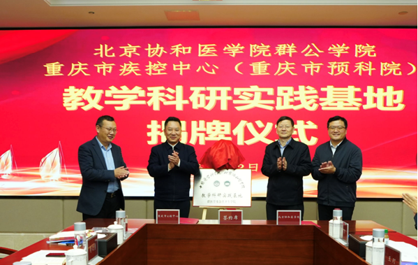 中国医学科学院北京协和医学院群公共学院副院长冯录召与重庆市疾控中心党委副书记、主任张华东,代表双方庄重签署共建教学科研实践基地合作备忘录。随后,市疾控中心党委书记黄邦成与杨维中院长共同为教学科研实践基地揭牌。此次合作备忘录的签订,标志着双方将在传染病监测预警、大数据应用、科研创新、人才培养、平台共建等领域,开展全方位、深层次合作,为助力健康中国建设重庆实践疾控行动提供引领示范。