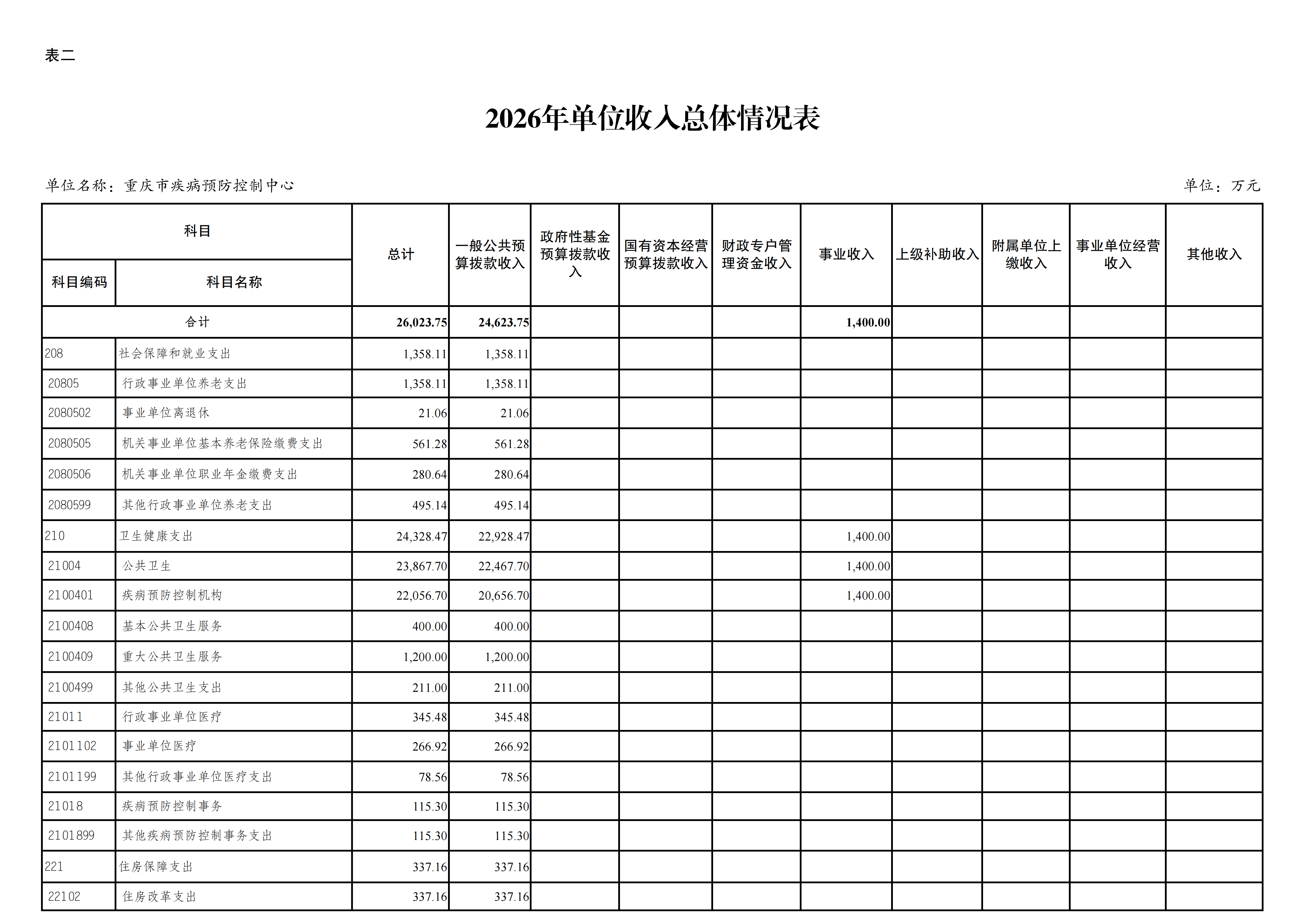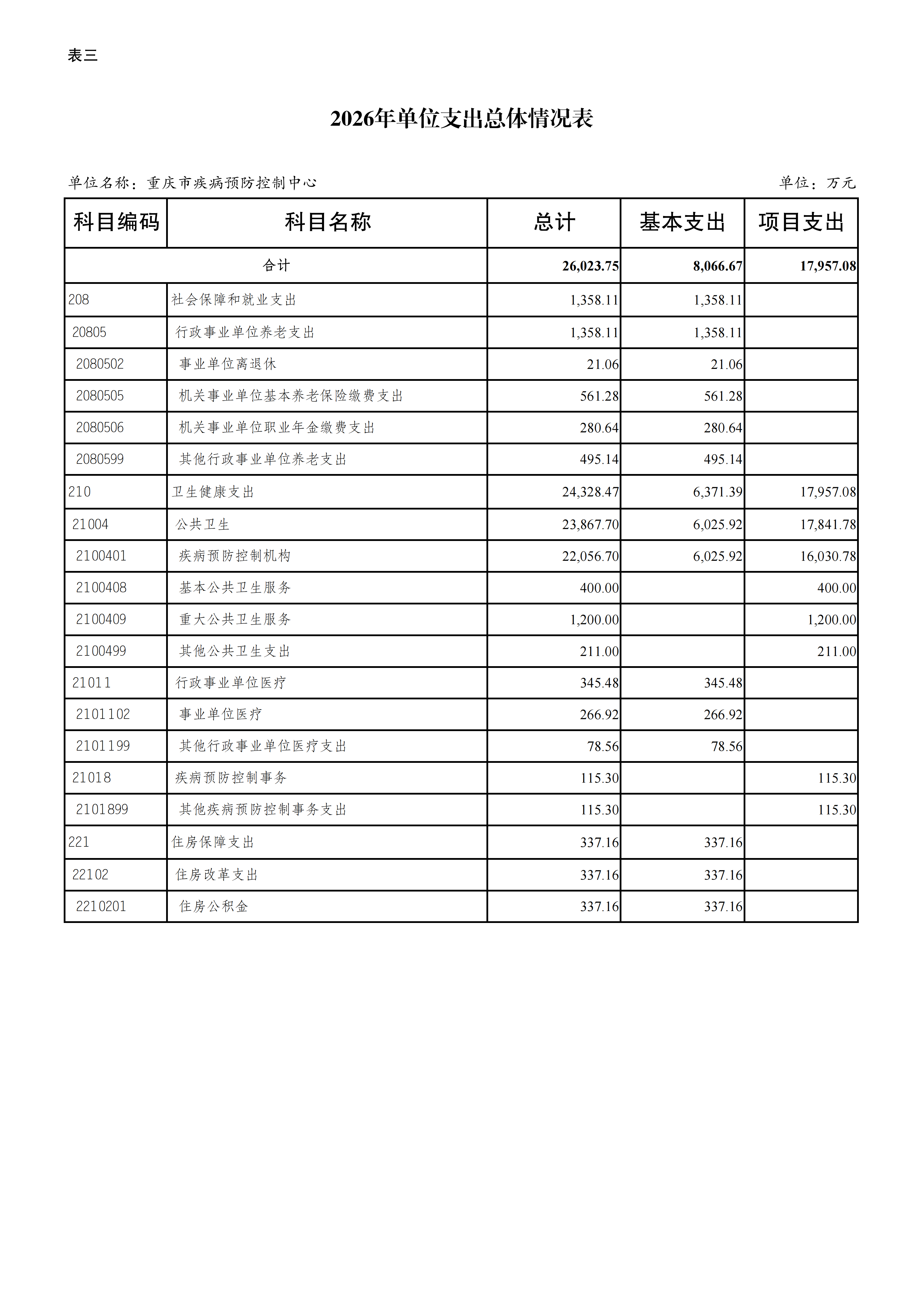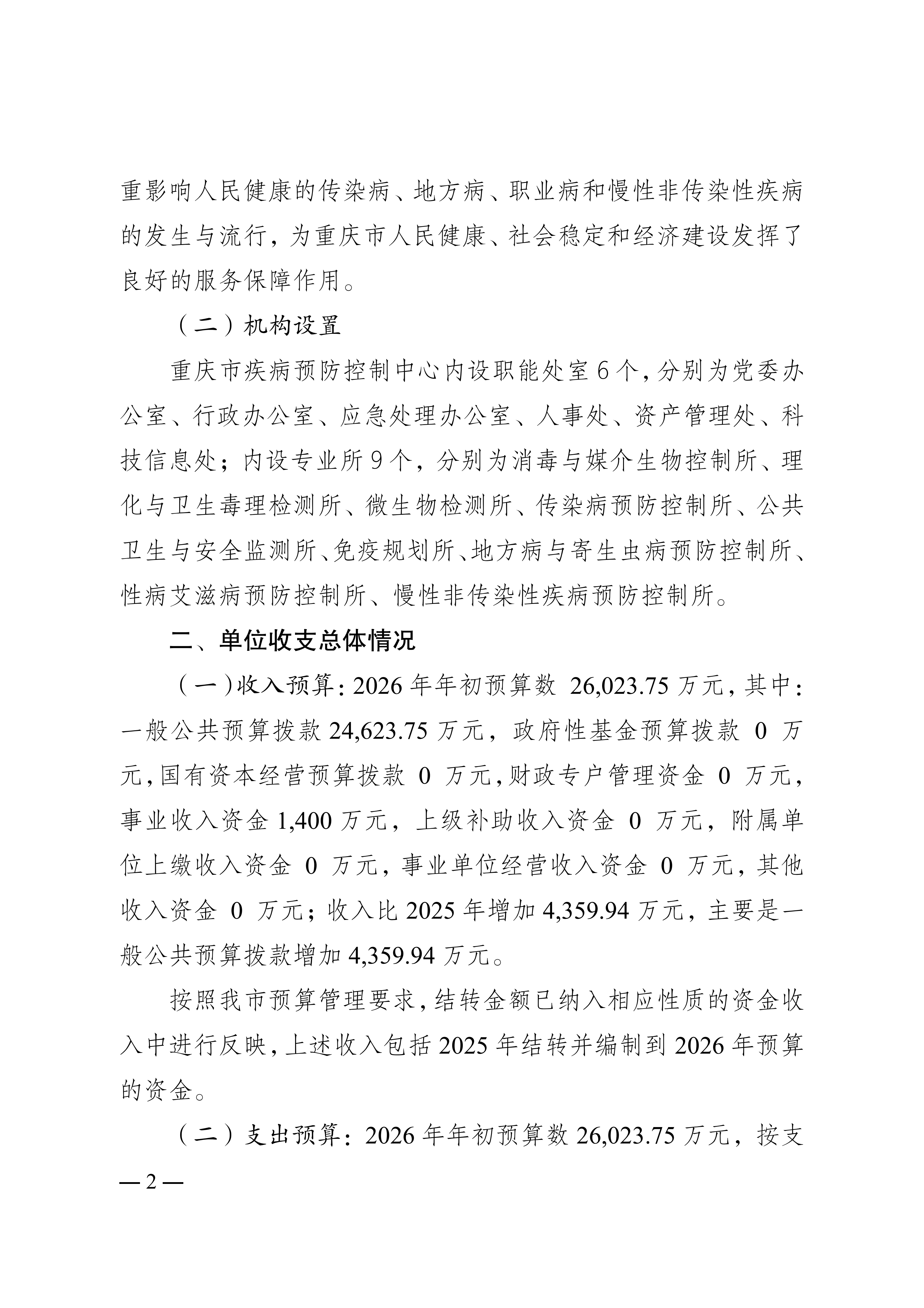 重庆市疾病预防控制中心 2026年单位预算情况说明