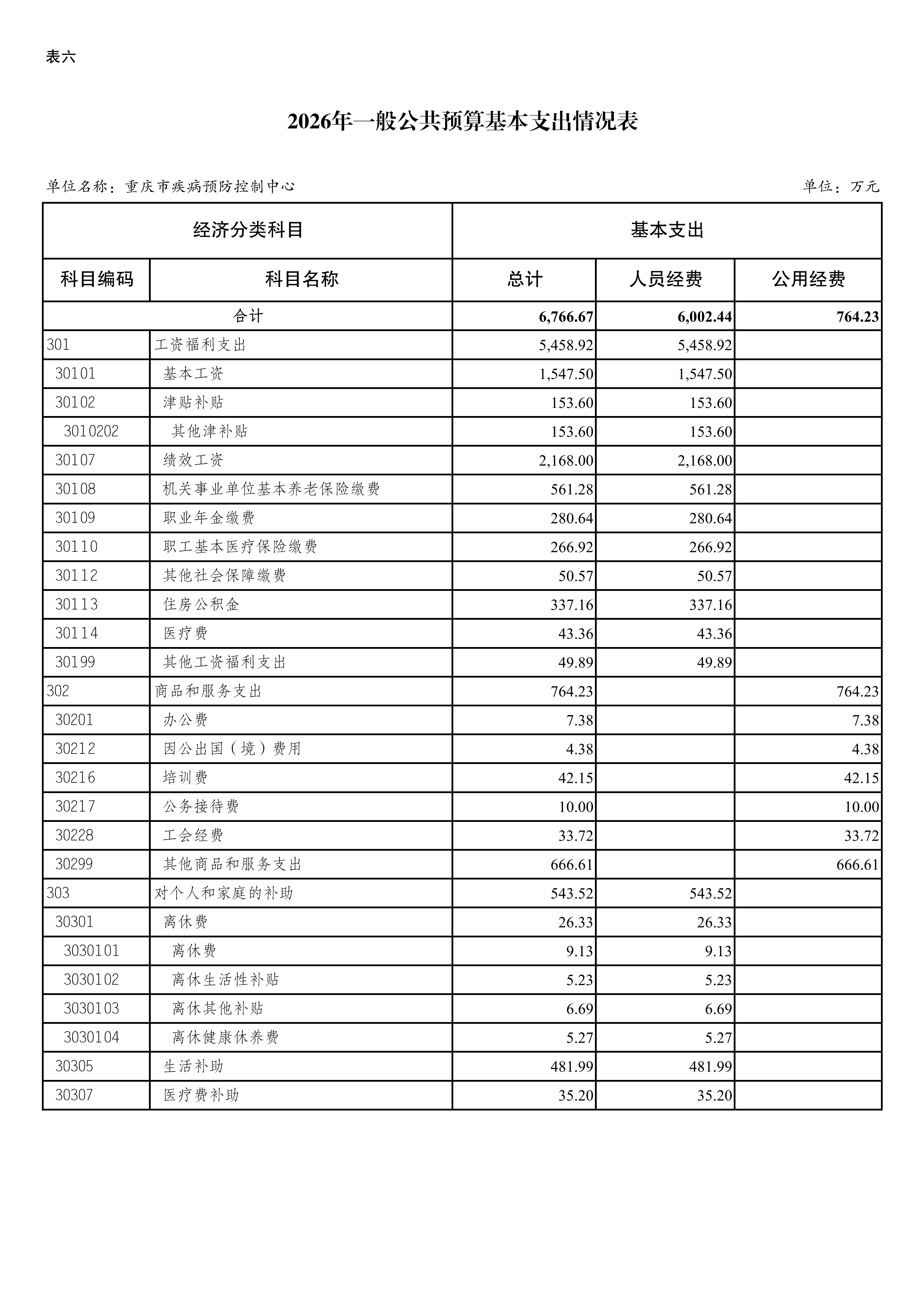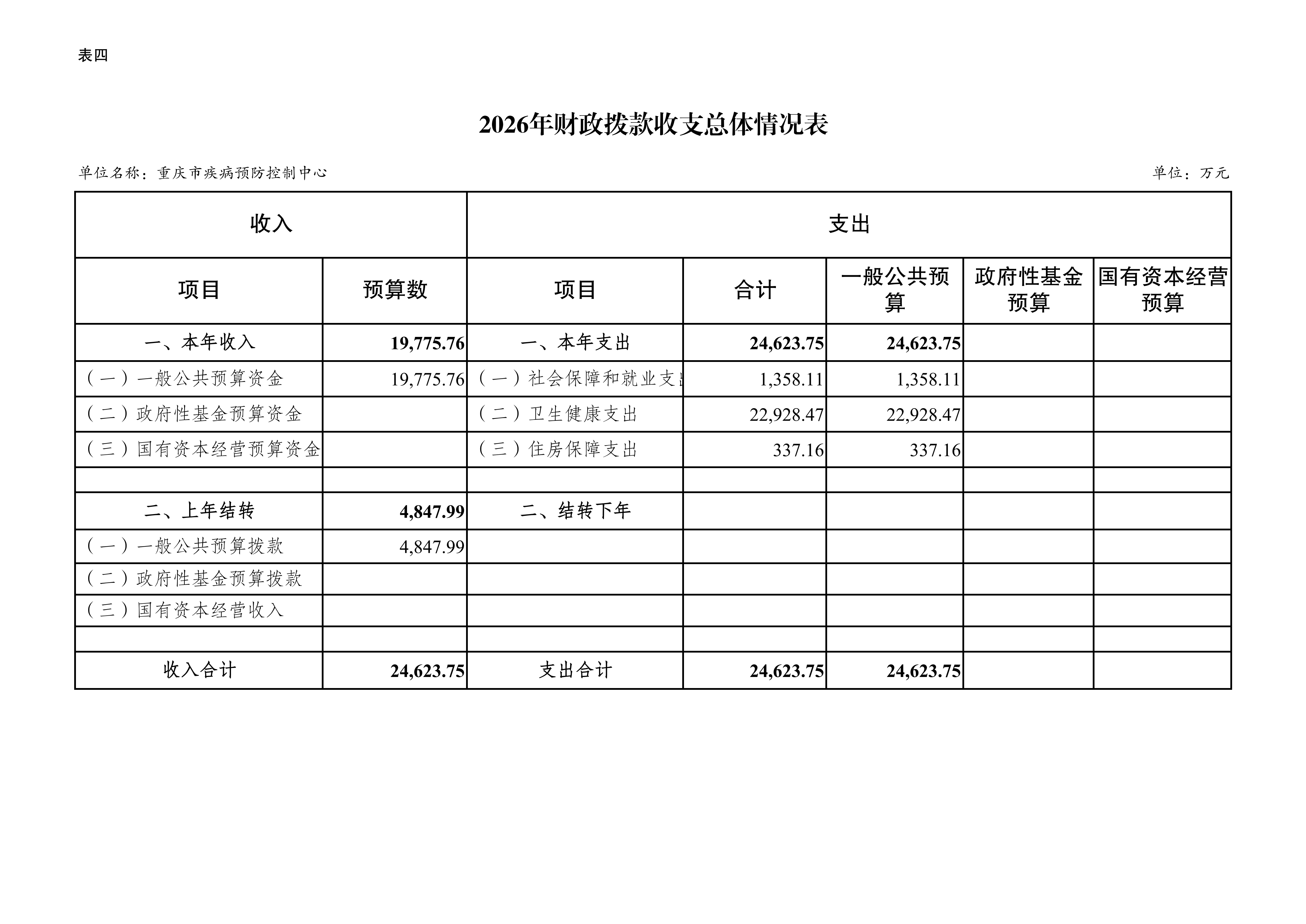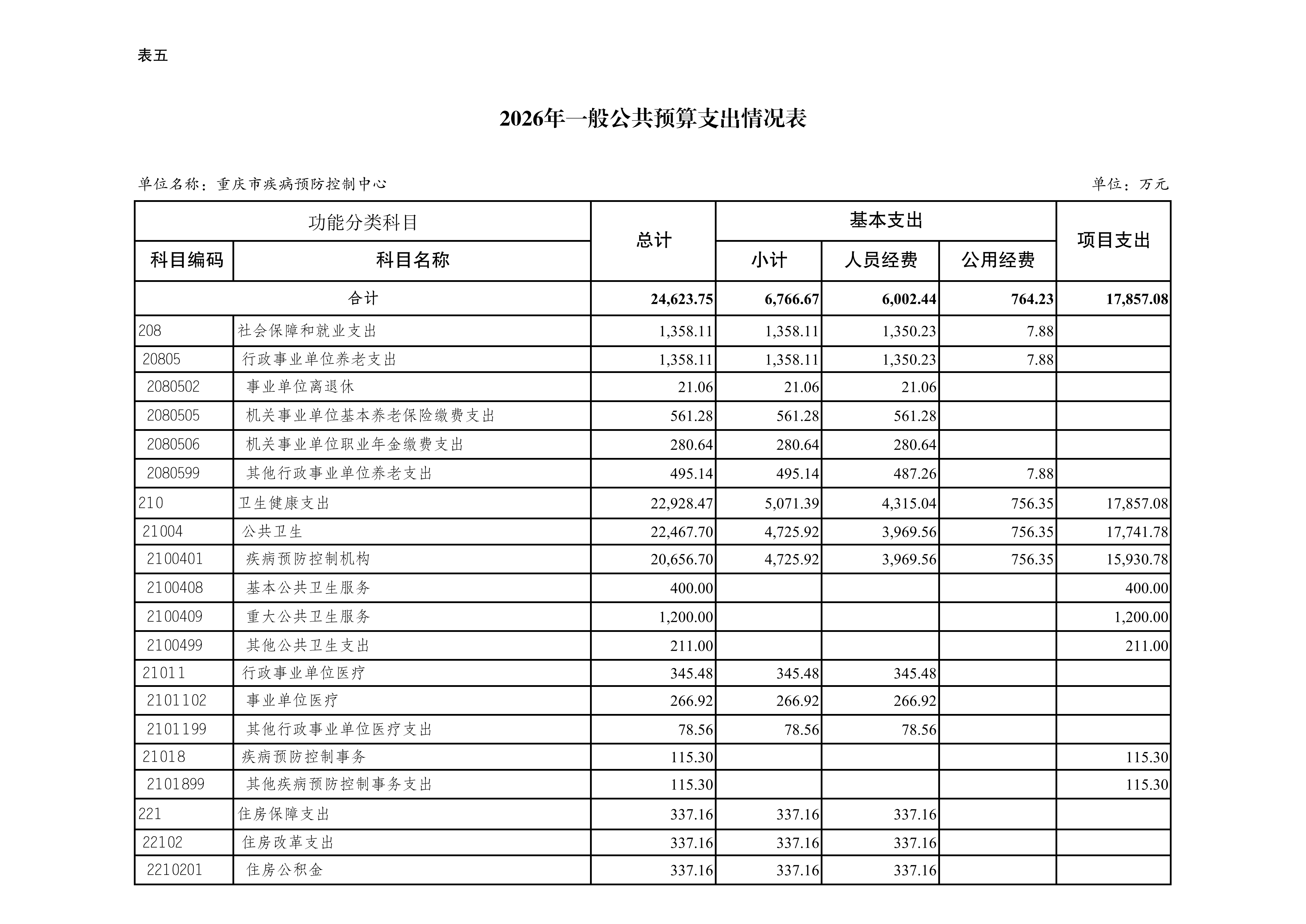 重庆市疾病预防控制中心 2026年单位预算情况说明
