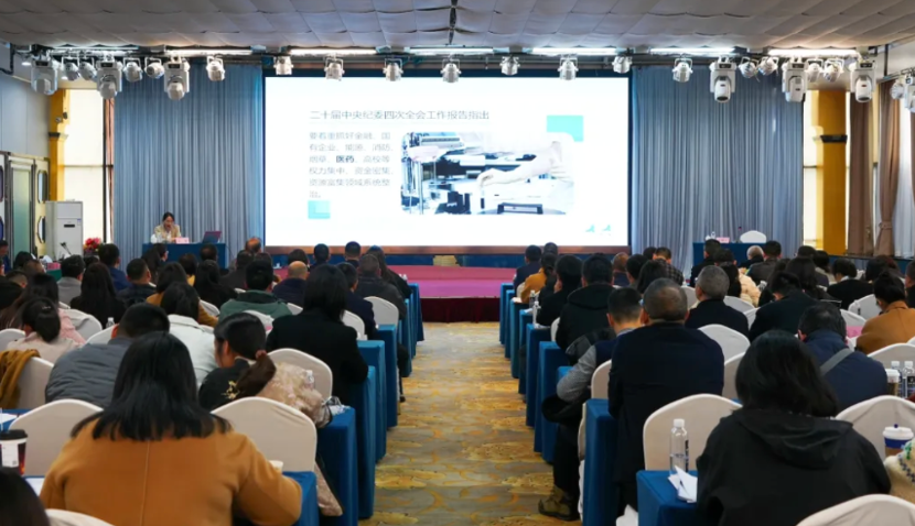 会议特别邀请到重庆市纪委监委第三监督检查室一级主任科员文丽同志作了《强化党风廉政建设 为卫生健康事业高质量发展保驾护航》主题培训,她围绕正风肃纪反腐取得的成绩,以及目前医疗卫生领域反腐败斗争存在的问题进行了详细阐述,引导大家提高政治站位、严守政治纪律和政治规矩。