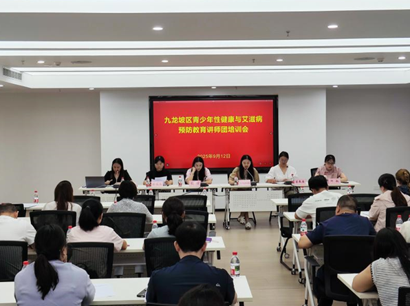 为进一步做好重庆市九龙坡区青少年性健康教育与艾滋病预防教育工作,切实增强青少年自我保护意识和能力,树立积极健康的性观念,有效阻断艾滋病在青年人群中的传播风险,守护青少年身心健康成长,2025年9月12日,九龙坡区教委和区卫生健康委联合举办青少年性健康与艾滋病预防教育讲师团培训会。讲师团成员以及区内各大学、中学、中职学校、各基层医疗卫生单位、区疾控中心相关工作人员50余人参加会议。会议由区疾控中心何惊春科长主持。